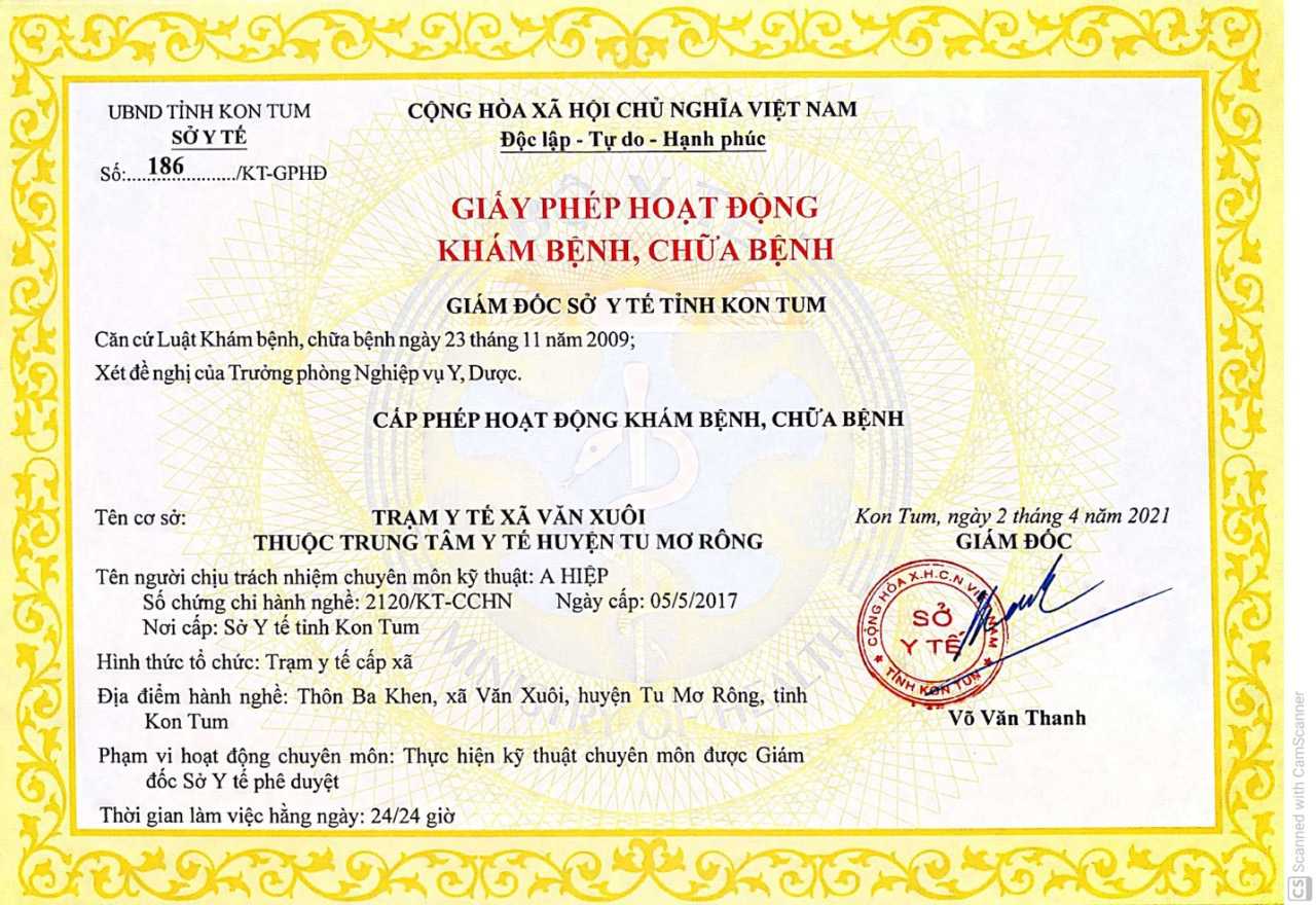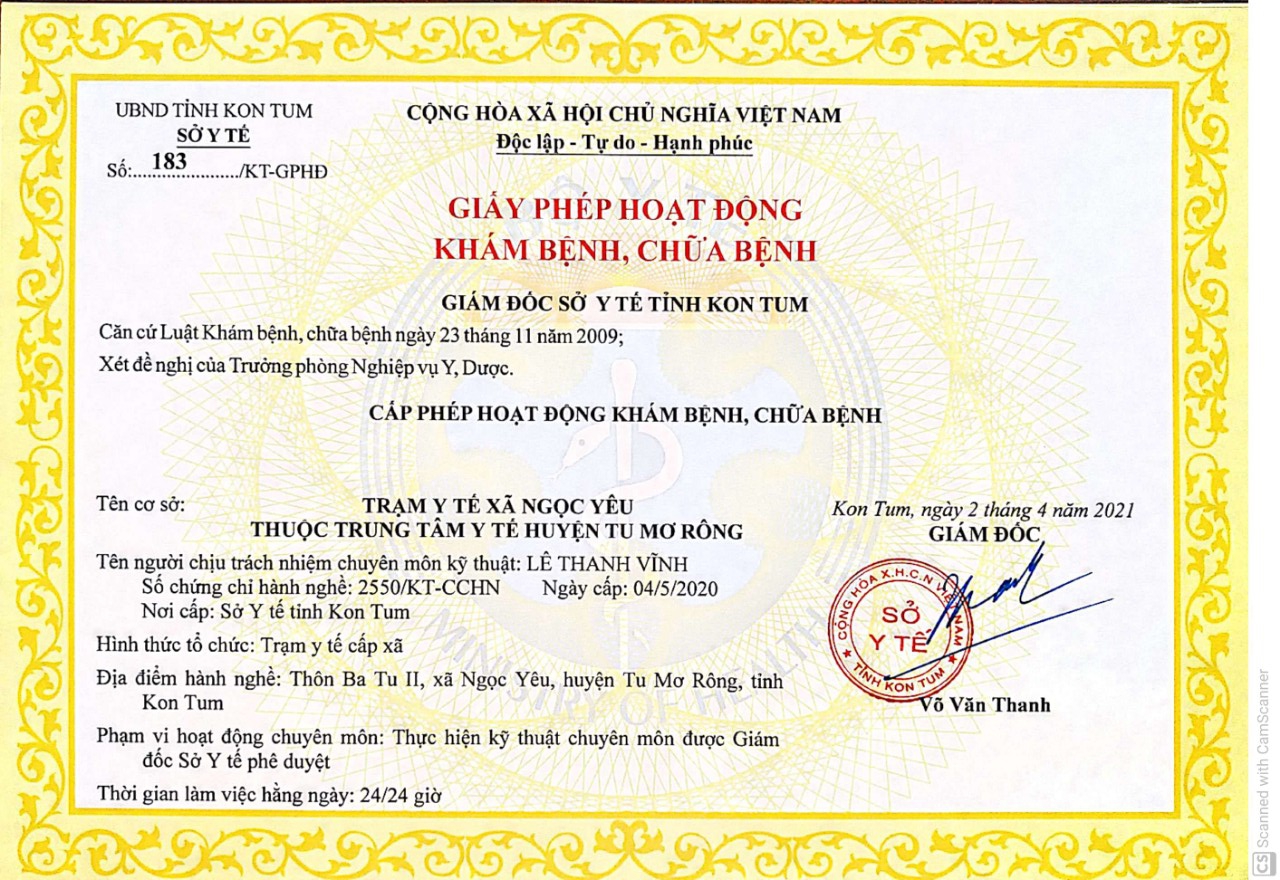 Giấy phép hoạt động Khám chữa bệnh Trung tâm Y tế huyện Tu Mơ Rông