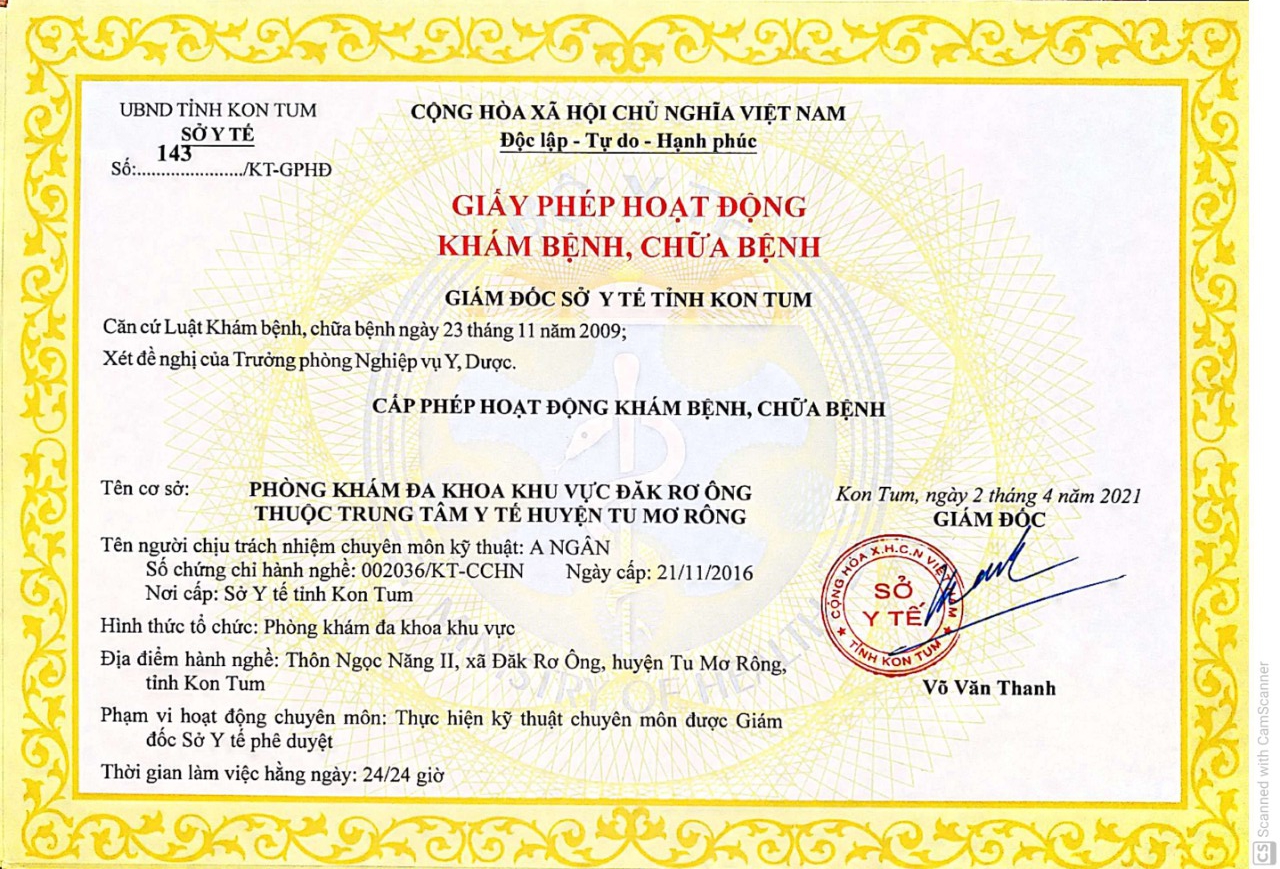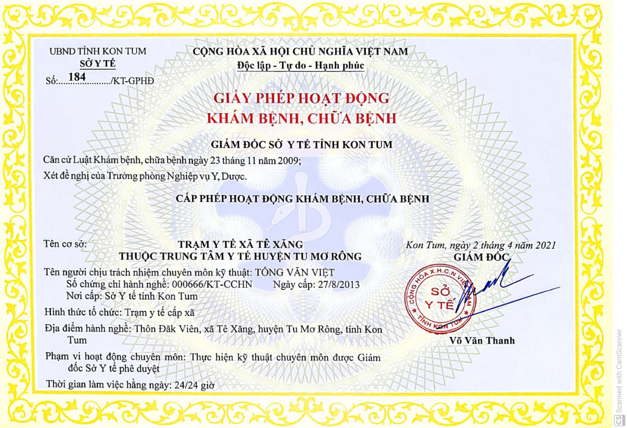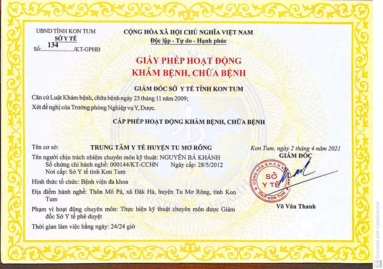 Giấy phép hoạt động Khám chữa bệnh Trung tâm Y tế huyện Tu Mơ Rông